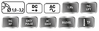 TIG AC: (160A – 20%) – (85A – 60%)
